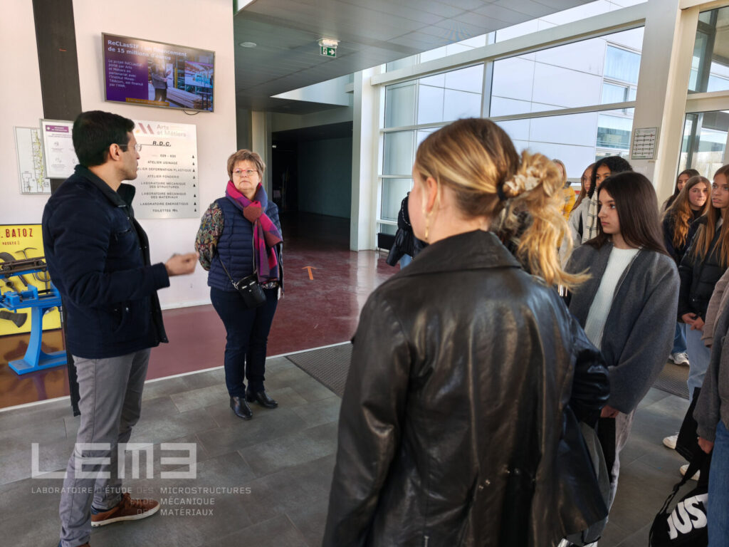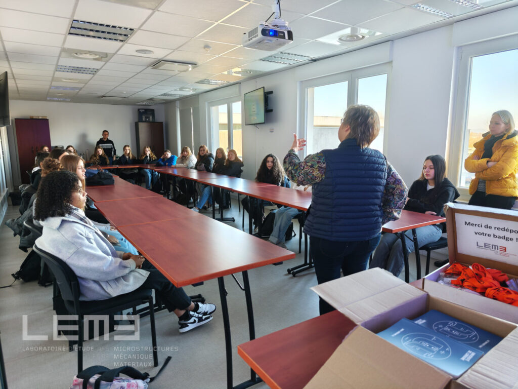 L’objectif de la journée était de présenter l’activité de recherche des deux établissements, en particulier les projets portés par certaines chercheuses du laboratoire, de décrire les métiers de la recherche en mécanique des matériaux ainsi que les parcours de formation scientifiques des filles et des femmes.