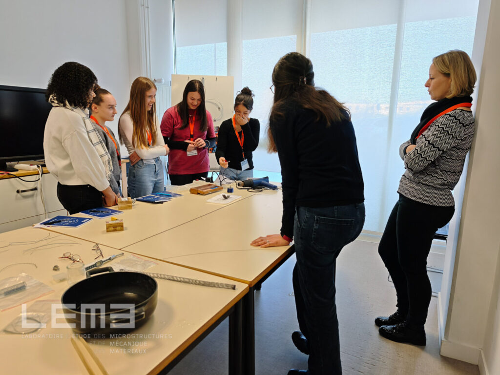 Durant une matinée, les collégiennes ont pu découvrir le monde de la recherche ainsi que l’activité de recherche menée au LEM3, par le biais d’un circuit d’ateliers tenus par des personnels et des doctorantes du laboratoire.